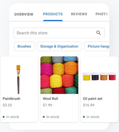 Give people who find you online a warm welcome with posts about discounts, new products, upcoming events, and more—making shoppers excited to choose you. Plus, let people reach you with direct messaging and reviews.